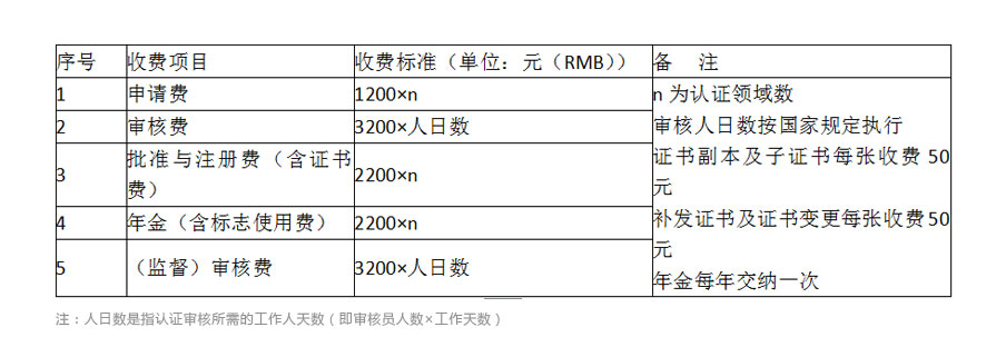 c) 批准与注册费(含证书费):初次认证、再认证、认证变更等的批准与注册费用,按不同认证领域分别收取;